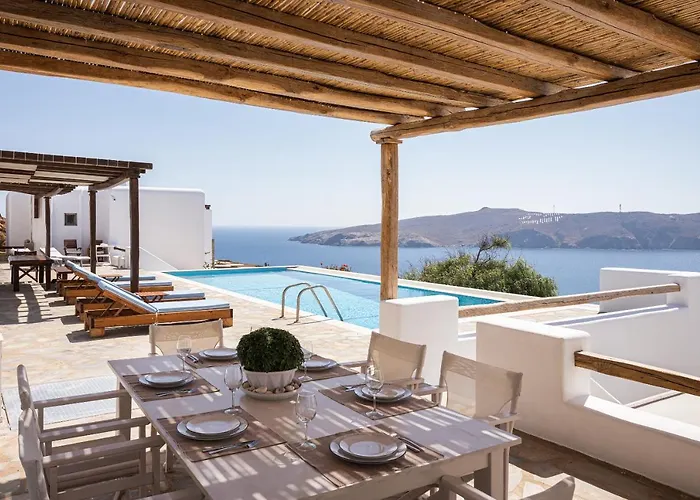 Situata a 550 metri da Andreas Bekas, la villa Estia'S Residence Panormos comprende una terrazza con vista sul mare. Dotata di una piscina, questa villa si trova a 4 km dal Quartiere di Little Venice.